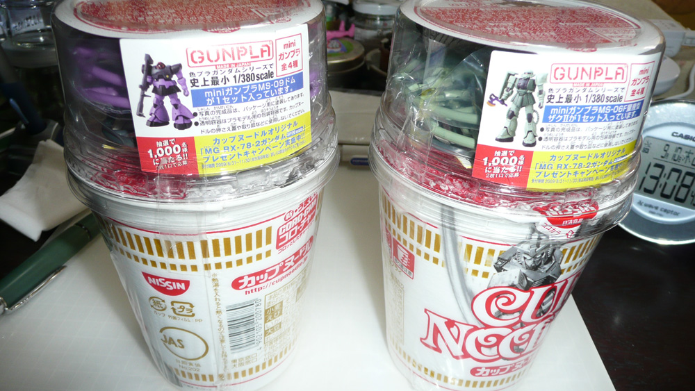 ガンプラとカップラーメンのコラボレート商品の、